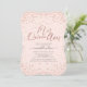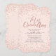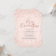 Convite de aniversário de 15 anos Mis Quince Años rosa moderno. Este design simples apresenta tipografia elegante em rosa dourado em um fundo rosa claro e moldura de confetes de diamante.
