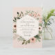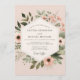 This design features a romantic arrangement of blush and peach anemones. Soft watercolor foliage in shades of sage green elegantly surrounds the central area. The overall aesthetic is delicate and botanical, perfect for a spring or summer union. A soft pink background completes this ethereal composition.