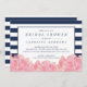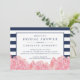 Belo e moderno blush e convites de chá de panela marinhos anunciam seu evento para convidados no estilo moderno, mas elegante. Cartões retangulares arredondados apresentam fundo azul-marinho e faixa branca e um agrupamento de peões aquosos em cor-de-rosa-quartzo cor-de-rosa-rosa, uma cor 2016 do ano. Adicione seus detalhes de evento em uma combinação de teclas de bloco e itálico para uma aparência clássica com um toque.