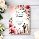 This elegant watercolor floral wedding invitation is perfect for a modern wedding. The romantic design features a sleek watercolor floral frame with a bride and groom illustration and black calligraphy on a white background.