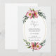 Celebrate your love story with this romantic blush pink floral wedding invitation, beautifully framed in a delicate gold oval. Soft watercolor blooms with lush green foliage adorn the top and bottom, creating a graceful, balanced design that feels both timeless and fresh.