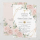 Convites Blush Pink Floral Roses Gold Cross Baptism