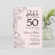 Inverso, rosa e preto, surpreendente 50 anos de convite. A design feminina moderna apresenta sotaques botânicos e fontes de script de tipografia. O cartão de convite floral elegante é perfeito para uma festa surpresa na moda. Impressos convites Zazzle ou modelo de impressão digital instantânea para download.