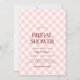 Convites de chá de panela cor-de-rosa macio com um padrão de gingham. Bonita e simplista.