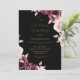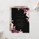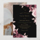Modern stylish wedding invitation pink roses with gold dust on with a gold ink pour effect and modern calligraphy. Classy and elegant, simple and modern invitation.