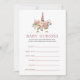 Tendy colorways watercolor rosa-claro e rosa-ouro rosa unicórnio Chá de fraldas bebê adivinhando cartões de jogo com sotaque de ouro.