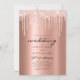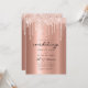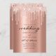 Uma elegante lamparina de gradiente rosa dourado pinga com um convite de casamento de luxo de escrita moderna. Esta elegante design de tendências geométricas na moda deslumbrante é perfeita para a garota inteligente e elegante ou qualquer um. Personalize este design com sua própria mensagem e informações personalizadas. Todas as designs são impressas.