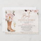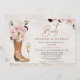 Blush Rustic Boots Brunch Bubble Chá de panela Boot brunch e chá de panela bubble em um estilo rústico com fundo de aquarela esmaecida e borda decorativa. Este chá de panela russo também apresenta um vidro de champanhe e uma rubrica de caligrafia moderna.