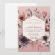 This design exudes a romantic and artful ambiance with its painterly floral aesthetic. A delicate palette of dusty rose and blush provides a soft background for dramatic charcoal and white anemones. Lush botanicals create a sense of moody elegance, perfect for a sophisticated and timeless union.