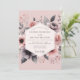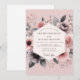 Experience a romantic mood with this elegant floral arrangement. A delicate watercolor design features soft blush pink roses and dramatic charcoal anemones, creating a beautiful contrast. Wispy botanicals and muted foliage are artfully placed against a soft pink background, evoking a dreamy, painterly aesthetic for your special day.