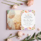 Barato de convites personalizados para batismo de bebê personalizados personalizados com seus detalhes de evento e foto. Este bonito design botânico apresenta uma moldura de cor d'água de pêssego e flores de lavanda com um fundo listrado no verso. Use as ferramentas de design para carregar sua foto e editar as fontes de texto e as cores para criar um primavera floral Baptism elegante ou um convite de Natal.