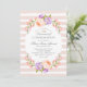 Barato impresso personalizado Sacramento de convites de Confirmação personalizados com seus detalhes de evento. Este bonito design botânico apresenta uma moldura de aquarela de pêssego e flores de lavanda sobre um fundo listrado. Use as ferramentas de design para personalizar o texto, editar as fontes e as cores ou adicionar suas próprias fotos para criar um convite de Confirmação floral de primavera elegante.