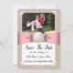 Salve a data do seu casamento com um lindo cartão personalizado. Este cartão plano com uma linda pérola branca e um desenho de fita rosa em um fundo bege neutro lembrará seus convidados da data do seu dia especial. Embora este ímã de lembrete de data seja uma ótima adição para qualquer época do ano, as cores rosa pastel e marrom se encaixam perfeitamente em um casamento de primavera. Além disso, as pérolas brilhantes, a cor de areia do bege e a cor coral das fitas rosa se adequam perfeitamente a um casamento na praia. A data marcada para o seu casamento é exibida de forma elegante na frente do cartão. Certifique-se de incluir os nomes da noiva e do noivo, bem como a data em que a cerimônia será realizada. Torne seu save the date ainda mais pessoal com uma foto do casal feliz no topo do ímã, lindamente emoldurado com pérolas. Por fim, não se esqueça de adicionar seus monogramas no verso do cartão para serem emoldurados com mais pérolas lindas.