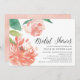 Chá de panela chic apresenta ilustrações de flor de pénicas de cor aquosa em cor de pêssego e cor-de-rosa esbranquiçada, acentuadas com folhas verdes e peludas. Personalize com os detalhes do seu chá de panela alinhados à direita. Cartões invertem um plano sutil de lavagem com aquarela sutil.