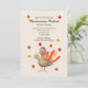 Um belo convite de Ação de Graças com a minha design de um pequeno peru e folhas de maple.