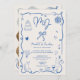 Celebrar a união do amor com nossas iniciais encantadoras... Retrô, convite para casamento francês! Este design francês ilustrado, desenhado à mão, exalta elegância e capricho, apresentando delicados rabiscos, armações onduladas de borda, e desenhos intrincados de comidas e bebidas. De copos de vinho a coquetéis e doces deliciosos, os detalhes alarmantes estabelecem a palco de uma celebração memorável de amor. A letra escrita à mão adiciona um toque pessoal, enquanto as cores azuis editáveis permitem personalizar o convite para corresponder perfeitamente ao seu tema de casamento. Com uma foto ondulada atrás, capturar momentos de precioso para acalmar para sempre.