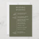 Cumprimenta seus convidados de casamento com este elegante cartão de casamento da floresta verde-oliva escura. Apresentando um design minimalista e uma tipografia limpa, este cartão descreve claramente os principais eventos do seu fim de semana especial. Perfeito para casamentos rústicos, bitos ou naturais inspirados. Este na moda e cartão de boas-vindas funcional definem o tom a partir do momento em que os seus convidados chegam. Disponível como cartão impresso ou download digital para fácil impressão.
