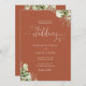 Este elegante verde deixa o convite de casamento de terracotta pode ser personalizado com seus detalhes de celebração em tipografia quic. Projetado por Thisnotme©