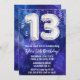 Garoto 13 branco azul de Aniversário convite para meninos 13 convites de aniversário para um menino roxo azul com escrevendo moderno de escrita e balões de folha divertida.