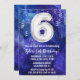Garoto 6 branco azul de aniversário convite para meninos 6 convites de aniversário para um garoto roxo azul com escrevendo moderno de roteiro e balões de folha divertida.