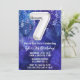 Garoto 7 branco azul de Aniversário convite para meninos 7 convites de aniversário para um garoto roxo azul com escrevendo moderno de roteiro e balões de folha divertida.