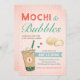 Convite para aniversário de criança Mochi & Bubbles que pode ser usado para qualquer idade. Se a idade for diferente de UM, certifique-se de editar tanto o texto abaixo de "Bolhas" como o número de idade escrito no crachá da bebida.