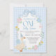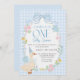 Bobo Azul Ganso Floral Gingham Primeiro Convite de Aniversário