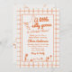 Se você estiver procurando um elegante convite exclusivo e personalizável de chá de fraldas neutro de gênero, ele é perfeito para você. Como podem ver, ele apresenta um roteiro manuscrito retrô de um ganso de bobo está quase lá em laranja. E ganso puxado à mão. E o quadro de borda laranja e os quadrados laranja controlados. Toda laranja e em fundo cremoso. Muito fácil de personalizar e usar. Então pegue e faça seus convites muito comprometidos.