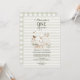 Celebre seu grande dia com este convite de primeiro aniversário para ganso de bobo, com um doce trio de gansos brancos cercados por florais brancos, um chapéu de aniversário e caixas de presentes pastel. O fundo verde-listrado suavizado adiciona um toque fresco e minimalista enquanto mantém as coisas muito rústicas. Ideal para cottagecore, coquete, ou aniversários de menina com tema de histórias. Personalize o texto editável para corresponder aos detalhes da sua festa.