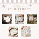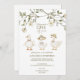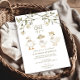 Adoravelmente bobo e perfeitamente doce, este convite para primeiros aniversarios apresenta três gansos em chapéus e arcos de safra debaixo de uma cobertura de florais de aquarelas. Com tons beges suaves, detalhes pintados à mão, e um encanto da floresta de um livro de histórias, é a escolha ideal para uma celebração neutra e inspirada na natureza — quer você esteja planejando dentro ou embaixo das árvores.