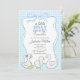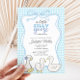 Celebre a chegada de um pequeno com este encantador convite de chá de fraldas para rapazes! Apresentando um tema lúgubre "Um ganso Bobo está quase aqui", este design mostra gansos bebês desenhados à mão adoráveis, uma borda de arco no estilo de coquetes caprichosos, e um fundo de gingham azul suave. Perfeito para qualquer chá de fraldas, este doce e na moda convite dá o tom para um encontro alegre com amigos e familiares. Personalize facilmente os detalhes para criar uma manutenção única para os futuros pais!