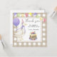 BOBO GOOSE. Festa de aniversário de criança de Aquarela. Ganso bonitinho de aquarela com chapéu de aniversário, bolo com bagas, balão roxo, terra festiva de bandeiras. Fundo da gaiola bege-castanho.