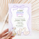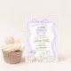Celebre a chegada de um pequeno com este charmoso convite para chás de fraldas neutro em termos de gênero! Apresentando um tema lúgubre "Um ganso Bobo está quase aqui", este design mostra gansos bebês desenhados à mão, uma borda de arco no estilo de coquetes e um fundo de gingham de lavanda suave. Perfeito para qualquer chá de fraldas, este doce e na moda convite dá o tom para um encontro alegre com amigos e familiares. Personalize facilmente os detalhes para criar uma manutenção única para os futuros pais!