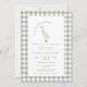 Celebre em estilo com este charmoso convite para o chá de fraldas "Um Pequeno Ganso Bobo"! Apresentando uma ilustração de ganso branco, borda verde suave de gingham, e tipografia divertida, esta design é perfeita para honrar a futura mãe. Ideal para formatos impressos e digitais, é uma maneira doce e moderna de juntar pessoas amadas para um dia especial.