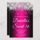 Crie seu próprio convite para comemoração de na moda 16 anos para sua filha. Gráficos cintilantes de prata cintilante decorativos formam uma borda superior. Personalize a cor do texto branco do convite ou os estilos de fonte. O texto "Sweet 16" também é personalizável. Os brilhos e a brilha do luxo serão criados por elementos artísticos que impressão gostam de uma foto.