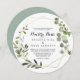 Este convite de casamento para a nuestra geométrica tropical de ouro é perfeito para um casamento moderno. A design apresenta lindas folhas verdes pintadas à mão, enfeitando um quadro geométrico dourado.