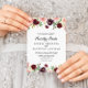 Este convite de casamento da nuestra floral de primavera burgundy é perfeito para um casamento moderno. O design pintado à mão apresenta folhas verdes, cor-de-rosa deslumbrante, pincelada, púrpura, vermelha, branca e lenhosa, pessoas bem organizadas em pequenos buquês fofos.