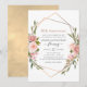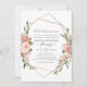 Convite de bodas de 50 anos de casamento com pintura em aquarela de rosa cor de rosa beije e dourado rose gold com moldura geométrica dourada e tipografia elegante.