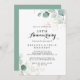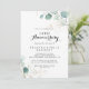 Este convite de bodas de ouro de eucalipto rústico para 50 anos de casamento é perfeito para uma celebração simples de aniversário de casamento. Este design artístico apresenta flores douradas desenhadas à mão e folhagem verde de eucalipto em aquarela, inspirando beleza natural.