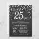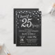 Convite de Bodas de Prata - 25º Aniversário de Casamento em Quadro de Giz Preto e Prata. Vinte e cinco anos de Aniversário de Casamento. Fundo de Diamante Brilhante Preto e Prata em Quadro de Giz. Confetes Prateados. Aniversário de Adulto. Festa de Aniversário de Homem ou Mulher. Para personalização adicional, clique no botão "Personalizar" e use nossa ferramenta de design para modificar este modelo.