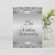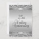 Convites elaborados de bodas de prata para recepção / festa de 25 anos de casamento. Frente e verso prateados com texto preto no verso dando um visual sofisticado a este convite de aniversário único.