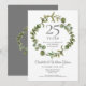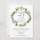 Com uma grinalda elegante de folhagem da floresta, este convite de aniversário de casamento de 25 anos botânico chic pode ser personalizado com as suas informações especiais de aniversário de prata. O verso apresenta uma grinalda correspondente emoldurando as datas do aniversário em texto branco elegante em um fundo prateado. Concebido por Thisisnotme©