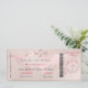 O cartão de embarque PixDezines salva a data de qualquer casamento de destino com um mapa do mundo rosa e um pequeno coração vermelho para indicar seu destino.