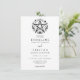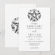 Um convite de casamento elegante e minimalista centrado na natureza, com um pentáculo rústico de galhos com flores, e tipografia clássica. Para um casamento simples, rústico ou um tema de casamento centrado na natureza.