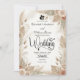 Set a serene, earthy tone for your outdoor matrimony with this elegant flat matte design featuring dried botanicals, pampas grass, and muted pastel tones.This stationery piece showcases a highly structured, balanced layout anchored by an asymmetrical border of painted dried foliage, pampas plumes, and bunny tail grass. The visual composition relies on a sophisticated palette of neutral taupe, dusty pink, and muted sage, contrasting sharply with crisp charcoal black typography that pairs traditional serif fonts with a modern, heart-flourished script. A subtle miniature silhouette of an embracing couple rests at the base of the foliage hierarchy, adding a distinct focal point without overwhelming the text.This is a flat printed image with a watercolor botanical texture effect, not actual raised material.