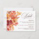 Melhore a sua suite de outono com o nosso Cartão de Detalhes de Casamento Floral Pintado Pintado Pelas Mãos. Este cartão bonito mostra uma impressionante variedade de florais de aquarela em tons ricos de outono, incluindo laranja queimado, vermelho profundo e amarelo ouro. O intrincado design floral enquadra o elegante título caligrafia "Detalhes", criando uma mistura harmoniosa de encanto rústico e sofisticação. Este cartão fornece informações essenciais sobre a recepção, incluindo o tempo e a localização da recepção jante, imediatamente após a cerimônia. Além disso, inclui uma seção para mais detalhes, orientando convidados para o site do seu casamento para obter mais informações. A paleta quente e automática e as ilustrações detalhadas de aquarela garantem que este cartão detalhado complementa perfeitamente os seus convites de casamento com temas bitos.