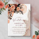 Este elegante design de convite para o casamento apresenta florais lindos em fundo com tipografia clássica. Esta design é a escolha perfeita para um casamento rústico mas elegante no final do verão ou no outono.