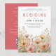 Este elegante design de convite para o casamento apresenta florais lindos em fundo com tipografia clássica. Esta design é a escolha perfeita para um casamento rústico mas elegante no final do verão ou no outono.