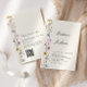 Caligrafia elegante boho flores silvestres casamento Código QR tudo em um convite.