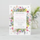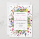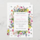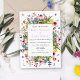 Boêmia, moderna e simplesmente perfeita para o verão, este convite de casamento apresenta um quadro de flores silvestres delicadas e brilhantes com borboletas, espécimes do gênero Bombus spp. e joias-loucas. Você pode personalizar todos os detalhes de texto e posicionamento gráfico de acordo com suas necessidades específicas.